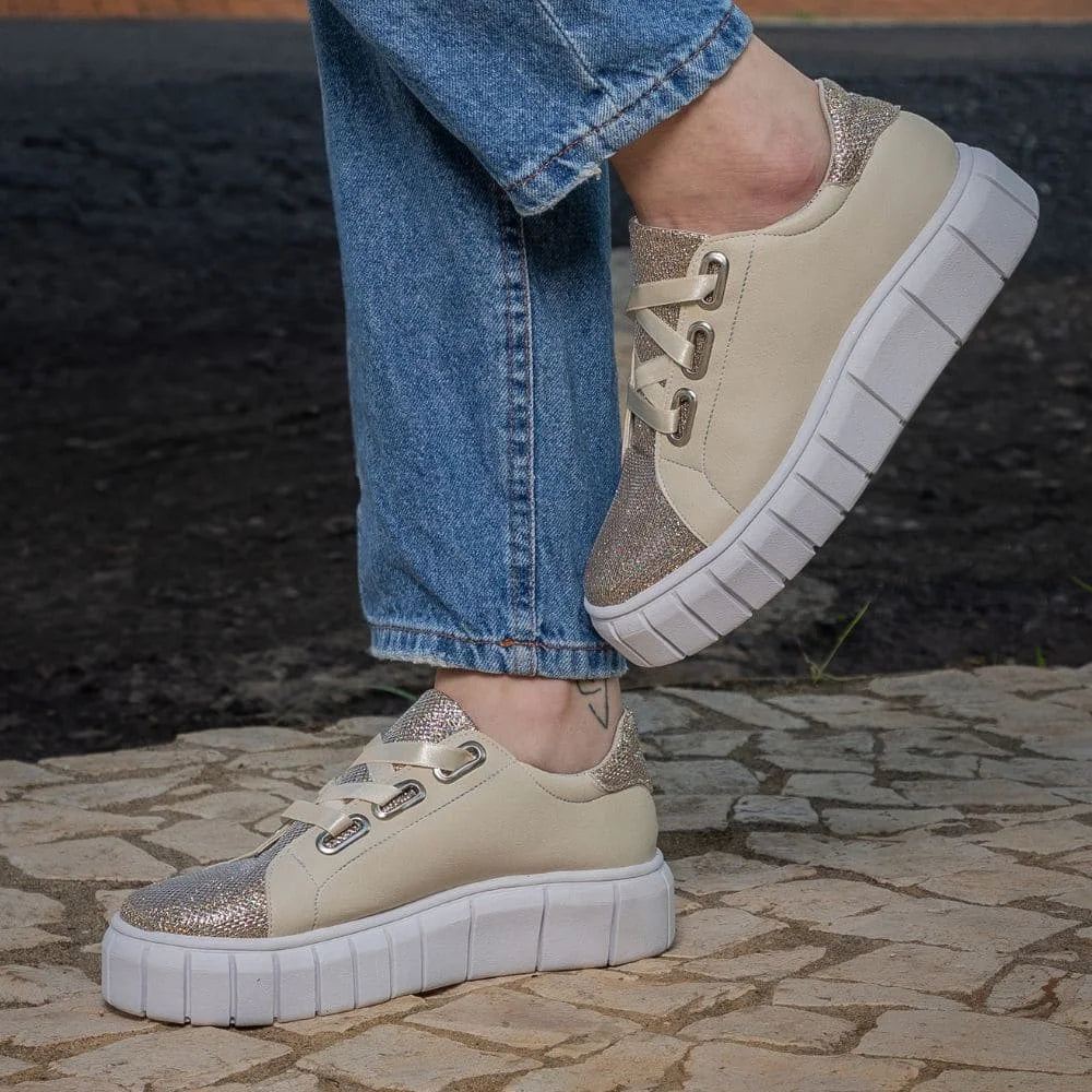 Destaque-se com o charme do Tênis Feminino Casual com Glitter GuGi 605-GG. Desenvolvido para mulheres que não abrem mão do estilo e conforto, este modelo une brilho sofisticado, design moderno e acabamento de alta qualidade.