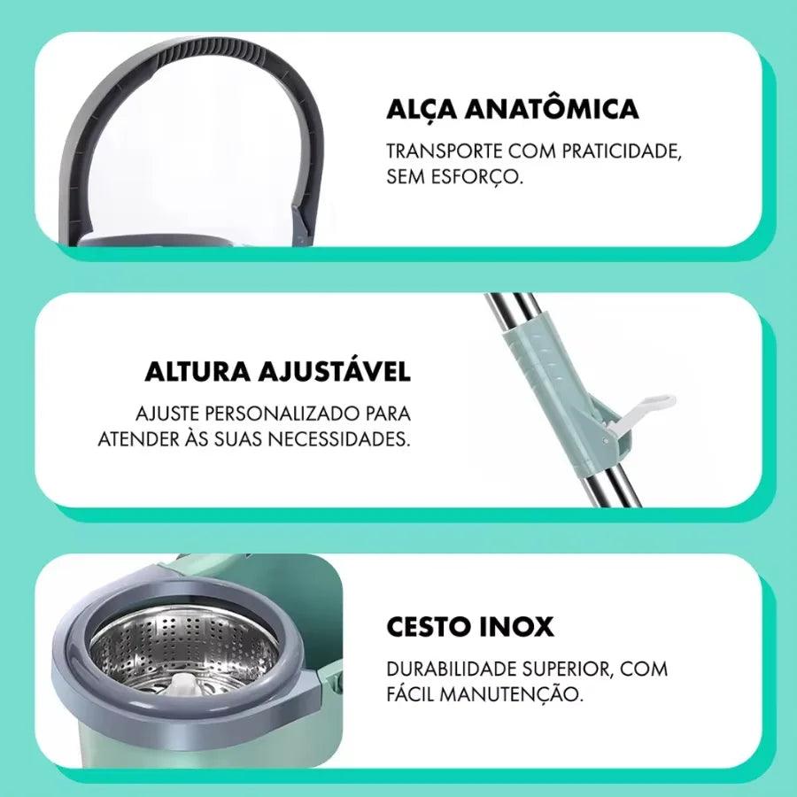 Adquira agora o Mop Giratório 360° com Balde Inox e transforme sua rotina de limpeza em algo mais simples, rápido e eficiente.